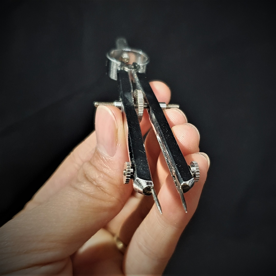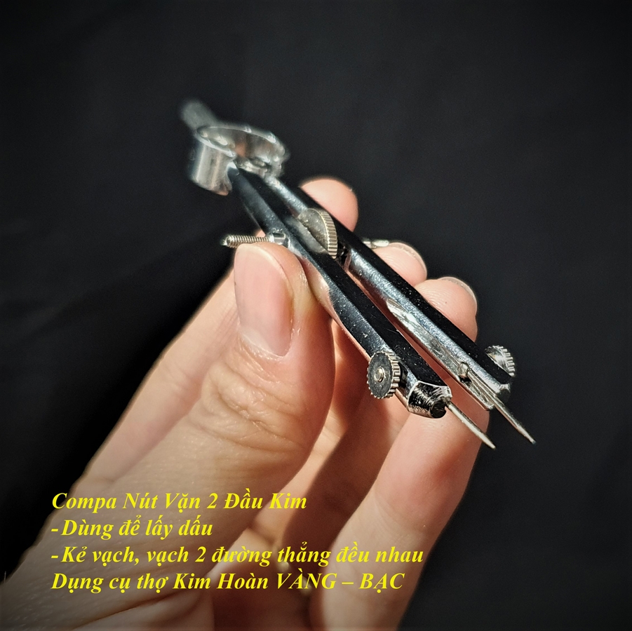 Compa sắt là dụng cụ đo – vẽ quan trọng trong nghề kim hoàn và chế tác trang sức, giúp đo đường kính, chia khoảng, vẽ vòng tròn và canh đều chi tiết kim loại nhỏ.