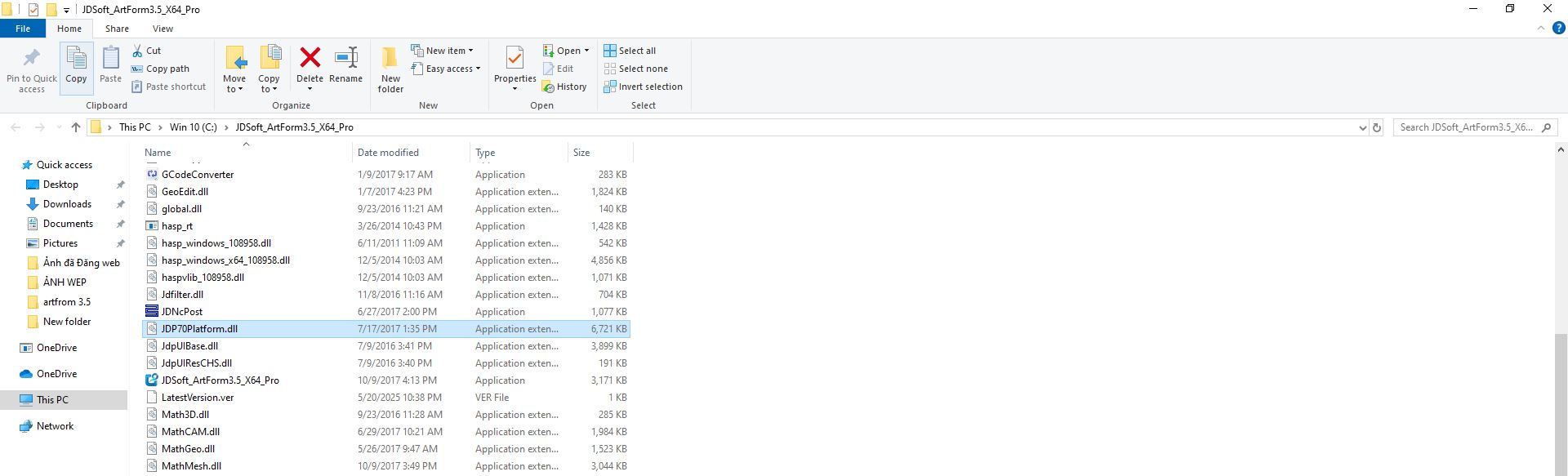 - Sao Chép file "JDP70Platform.dll" và dán vào thư mục của phần mềm C:\JDSoft_ArtForm3.5_X64_Pro.