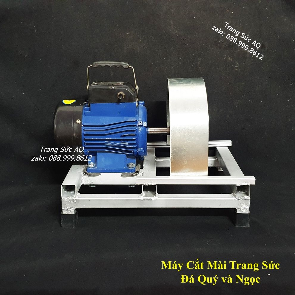 Đây là bộ máy do bên mình tự chế tạo phù hợp với ngành mài – chế tác đá quý và ngọc. Máy sử dụng motor mới 750W, 100% dây đồng, cốt dài lắp đĩa cắt 200mm, lỗ cốt 25mm, lắp đĩa mài 150mm, lắp được bộ nỉ số để mài mịn và mài bóng hoàn thiện sản phẩm.